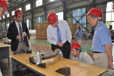 (集團(tuán))公司總工程師易希朗、副總經(jīng)理計(jì)曉亮等陪同客人先后參觀了換熱器公司、低機(jī)公司、新冷箱車間、容器公司、機(jī)電儀公司的生產(chǎn)現(xiàn)場。觀看了大型真空釬焊爐、換熱器翅片生產(chǎn)、換熱器焊接現(xiàn)場、五軸聯(lián)動(dòng)數(shù)控銑床、成型葉輪產(chǎn)品、空分設(shè)備生產(chǎn)、低溫貯運(yùn)設(shè)備生產(chǎn)、儀電控設(shè)備生產(chǎn)等。