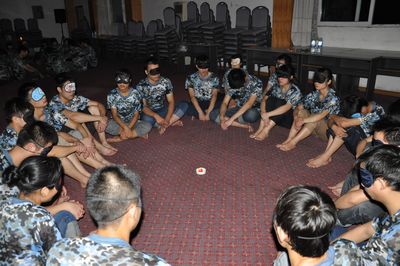 最后的一個(gè)訓(xùn)練項(xiàng)目是“巔峰對(duì)決”。要求每個(gè)團(tuán)隊(duì)在最短時(shí)間內(nèi)完成從1到50的連續(xù)報(bào)數(shù),活動(dòng)采取團(tuán)隊(duì)兩兩對(duì)決,哪個(gè)團(tuán)隊(duì)率先突破5秒就終止比賽,每輪PK團(tuán)隊(duì)落后,連長(zhǎng)受罰 ,用這種方式來(lái)鼓勵(lì)自己的團(tuán)隊(duì):我們不是一個(gè)人在戰(zhàn)斗,我們是一個(gè)團(tuán)隊(duì)共同在戰(zhàn)斗。在第五輪的時(shí)候,英雄連以4秒08的優(yōu)異成績(jī)突破5秒終止了比賽,其他團(tuán)隊(duì)也僅以微小的的差距落后。訓(xùn)練讓大家看到了自己的潛能,明白了表面上看起來(lái)不可能的事,其實(shí)并沒有想象中的那么可怕,只要用心去做,不可能的事都能成為可能。