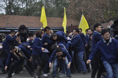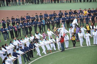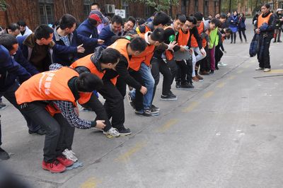廠慶大會(huì)結(jié)束后,在專業(yè)拓展訓(xùn)練公司教練的指揮帶領(lǐng)下,公司1200名員工分成12個(gè)訓(xùn)練方陣,每個(gè)方陣又分為A、B、C、D四支隊(duì)伍分別開展訓(xùn)練活動(dòng)。訓(xùn)練項(xiàng)目包括鼓動(dòng)人心、南極浮冰、搶灘登陸、我們是最棒的團(tuán)隊(duì)和團(tuán)隊(duì)動(dòng)力圈,其中前三項(xiàng)是小組任務(wù),第四項(xiàng)是團(tuán)隊(duì)任務(wù),最后一項(xiàng)是集體任務(wù)。所有項(xiàng)目都是依靠集體的力量和協(xié)調(diào)才能完成,這也是拓展訓(xùn)練所要達(dá)到的目的。尤其是團(tuán)隊(duì)動(dòng)力圈項(xiàng)目,1000多名員工圍成幾個(gè)同心圓,場(chǎng)面宏大,充分展示了團(tuán)隊(duì)的力量。