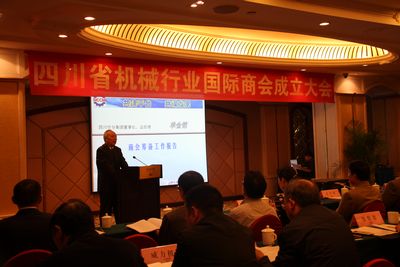 4月11日,四川省機(jī)械行業(yè)國(guó)際商會(huì)在成都成立,(集團(tuán))公司總經(jīng)理單金銘作為商會(huì)副會(huì)長(zhǎng)在大會(huì)上作商會(huì)籌備工作報(bào)告。
