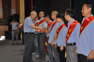 董事長(zhǎng)、總經(jīng)理、黨委書記單金銘向勞動(dòng)模范頒獎(jiǎng)