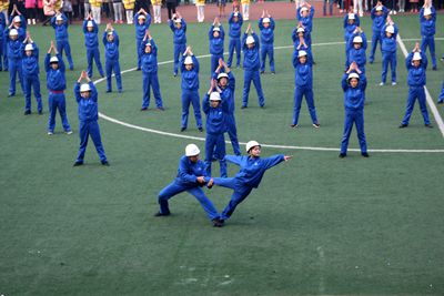 運(yùn)動(dòng)會(huì)舉行了入場(chǎng)儀式,在彩旗隊(duì)和鮮花隊(duì)引領(lǐng)下,首先進(jìn)場(chǎng)的是團(tuán)體操方陣,緊隨其后入場(chǎng)的是由公司員工組成的11個(gè)方陣。入場(chǎng)儀式后首先進(jìn)行的是(集團(tuán))公司建廠49周年慶祝大會(huì),董事長(zhǎng)、總經(jīng)理、黨委書(shū)記單金銘發(fā)表了致辭。之后,職工運(yùn)動(dòng)會(huì)舉行。