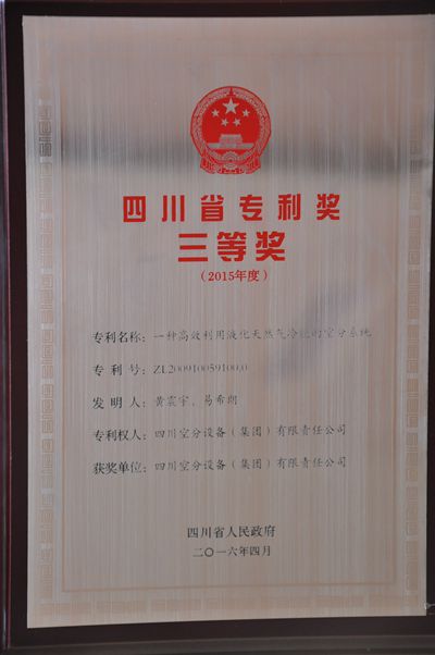 我公司黃震宇、易希朗的發(fā)明專利“一種高效利用液化天然氣冷能的空分系統(tǒng)”被四川省政府授予四川省專利三等獎。