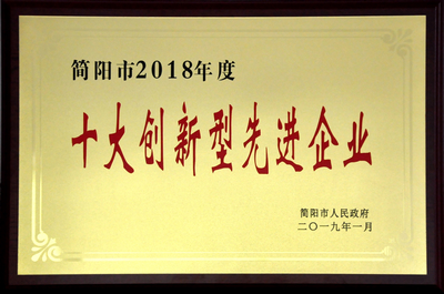 近日,我公司被簡陽市人民政府授予簡陽市2018年度“十大創(chuàng)新型先進企業(yè)”。