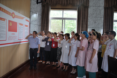 活動(dòng)圍繞“不忘初心 牢記使命”主題,全體黨員在黨旗面前重溫入黨誓詞,進(jìn)行一次思想洗禮。李本華帶領(lǐng)全體黨員學(xué)習(xí)了習(xí)近平總書記在“不忘初心 牢記使命”主題教育工作會(huì)議上的講話精神,以“守初心、擔(dān)使命,找差距、抓落實(shí)”為總要求,以力戒形式主義、官僚主義為重要內(nèi)容,立足醫(yī)院實(shí)際,扎實(shí)開展主題教育。會(huì)議還傳達(dá)了四川省委十一屆五次全會(huì)暨全省“不忘初心、牢記使命”主題教育工作會(huì)議精神及彭清華同志在省委“不忘初心、牢記使命”主題教育領(lǐng)導(dǎo)小組第一次會(huì)議上的講話要求。