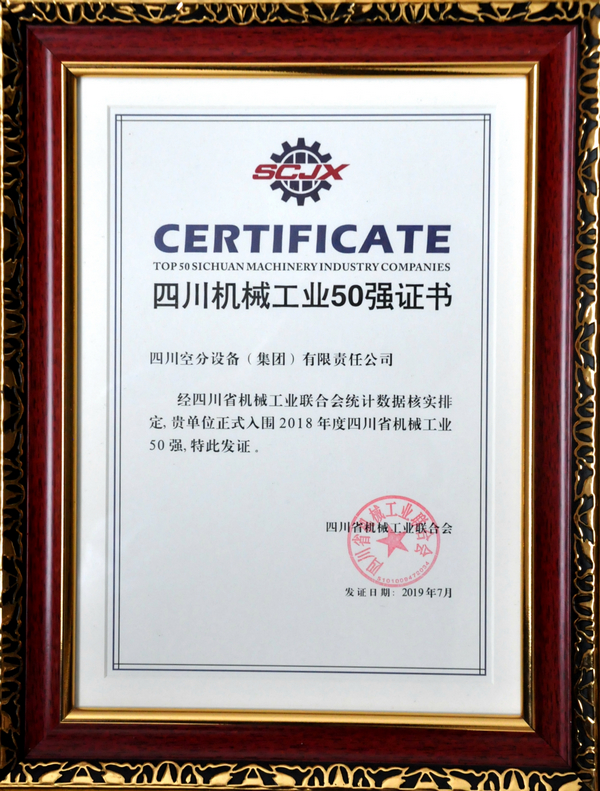 經(jīng)四川省機(jī)械工業(yè)聯(lián)合會(huì)統(tǒng)計(jì)數(shù)據(jù)核實(shí)排定,我公司以排名第三的業(yè)績?nèi)雵?018年四川省機(jī)械工業(yè)50強(qiáng)。