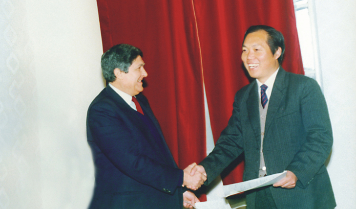 合眾共贏-與高校合作:?jiǎn)谓疸懚麻L(zhǎng)與華中科技大學(xué)校、院領(lǐng)導(dǎo)合影