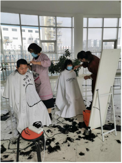 疫情發(fā)生以來,內(nèi)蒙古興圣和杭錦旗亨東的員工們堅守崗位,各部門、班組全力以赴投入疫情防控和各項生產(chǎn)安全穩(wěn)定運營工作中。由于疫情防控需要,杭錦旗大大小小的理發(fā)店均暫停營業(yè),員工們深受剪頭發(fā)困擾,為了讓抗“疫”員工們“輕松”上陣,內(nèi)蒙古興圣公司工會為大家安排理發(fā)師上門剪發(fā),解決大家的“頭等大事”。