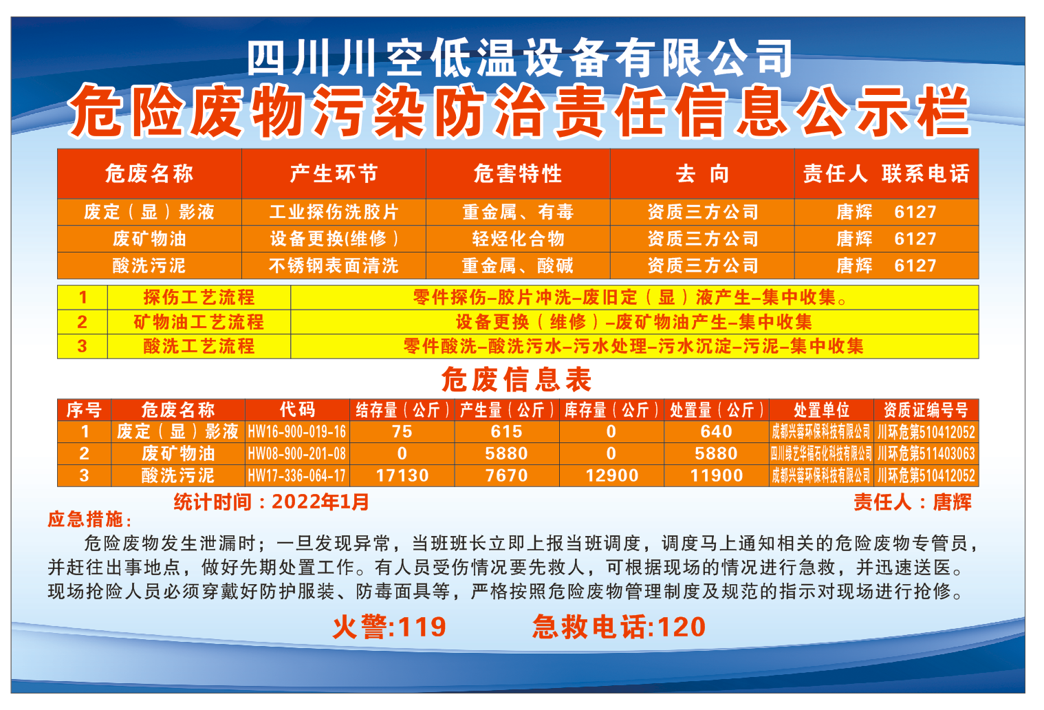 四川川空低溫設備有限公司——危險廢物污染防治責任信息公示欄