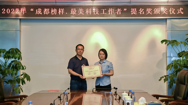 2022年6月,由中共成都市委宣傳部、成都市精神文明建設辦公室、成都市科學技術局、成都市科學技術協(xié)會聯(lián)合舉辦的“成都榜樣·最美科技工作者”評選工作落下帷幕。川空集團副總工程師、研究院院長江蓉同志榮獲“成都榜樣·最美科技工作者提名獎”。6月22日,簡陽市科學技術協(xié)會副主席田文富、簡陽市園區(qū)科協(xié)常務秘書長陳衛(wèi)民等一行來到川空集團,向江蓉同志頒發(fā)了獲獎榮譽證書、獲獎文件及榮譽冊。