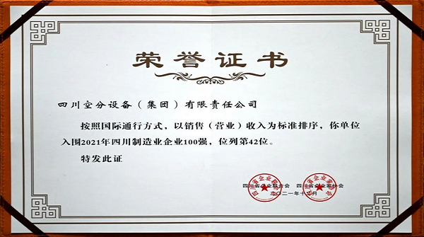 我公司入圍四川省制造業(yè)企業(yè)100強(qiáng)