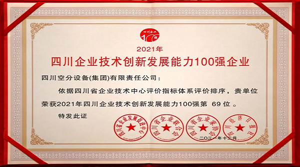 我公司入圍2021年"四川企業(yè)技術(shù)創(chuàng)新發(fā)展能力100強(qiáng)企業(yè)""四川企業(yè)發(fā)明專利擁有量100強(qiáng)企業(yè)"
