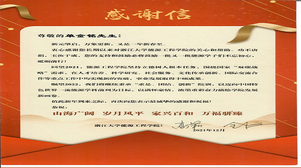 單金銘董事長給淄博魯川400T液體空分膨脹機(jī)項目研發(fā)小組的賀信