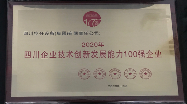 我公司被評(píng)為2020年度“四川企業(yè)技術(shù)創(chuàng)新發(fā)展能力100強(qiáng)企業(yè)”